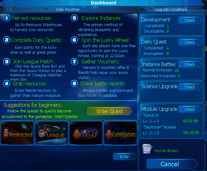 - Ship Research - Upgrade a set number of ship blueprints (each upgrade counts towards the quest, meaning levelling a blueprint to level 3 gains you two points)