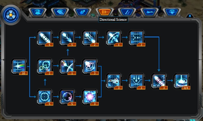 Directional Sciences will increase the firepower of directional weapons, increase the hit rates and much more. Please edit the time and gold needed to reasearch.
